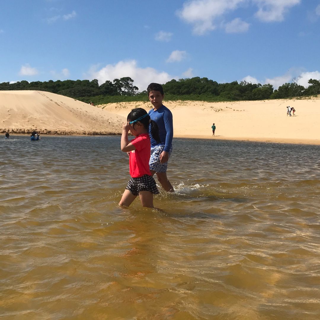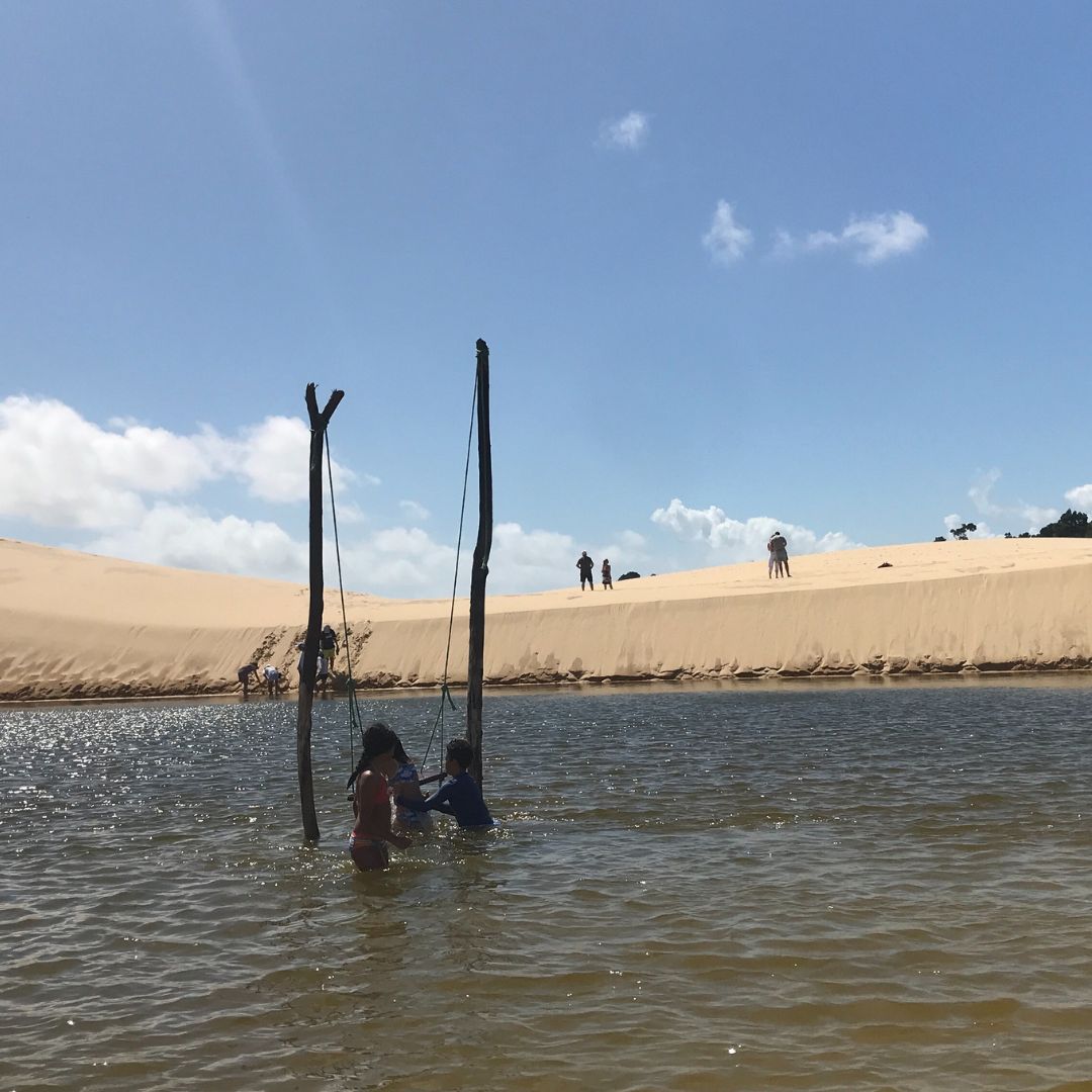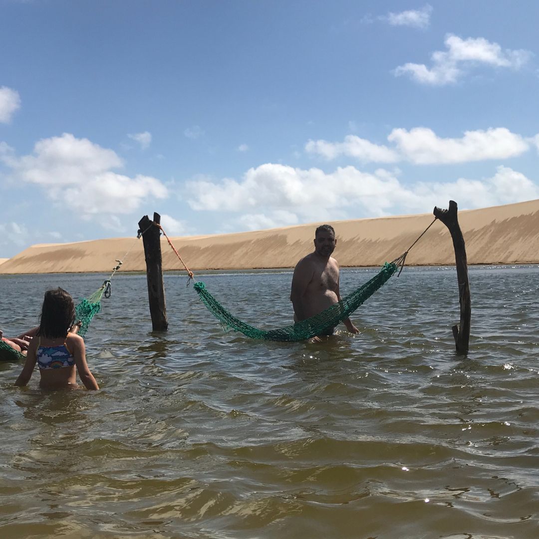 Posteriormente, no segundo dia, exploramos Santo Amaro, o município que abriga as lagoas mais profundas do parque. Visto que existe uma Lei Municipal restritiva, nossa logística é precisa: saímos de Barreirinhas em van e fazemos o transbordo para os veículos locais credenciados. Assim, sua entrada é garantida e segura.