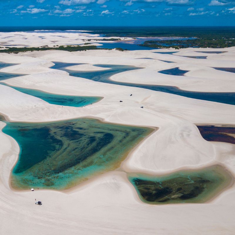 Explore a imensidão do Circuito Betânia, um dos roteiros mais icônicos para quem visita Santo Amaro nos Lençóis Maranhenses. Primeiramente, a equipe inicia o passeio em veículos 4×4, atravessando campos e dunas majestosas. Você desfrutará de diversas lagoas sazonais com águas em tons de azul e verde esmeralda. Em seguida, você chega ao povoado de Betânia, onde o Rio Alegre serpenteia o cenário, criando um contraste raro e inesquecível. Certamente, este é o local ideal para quem busca fotos perfeitas e um contato profundo com a cultura local.