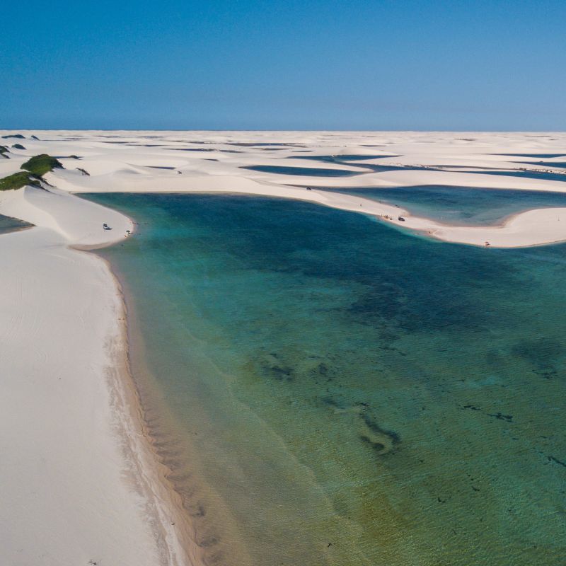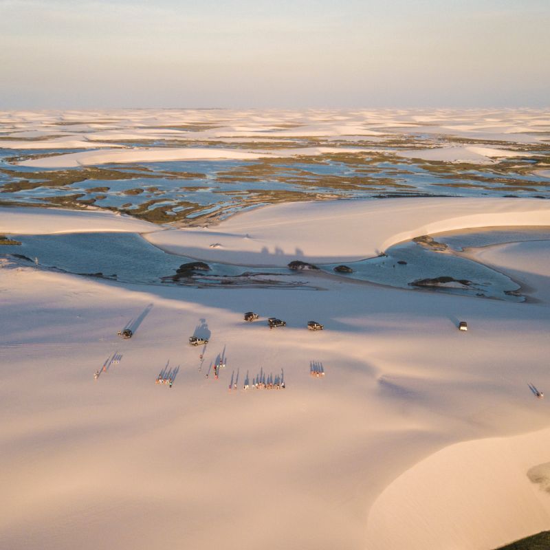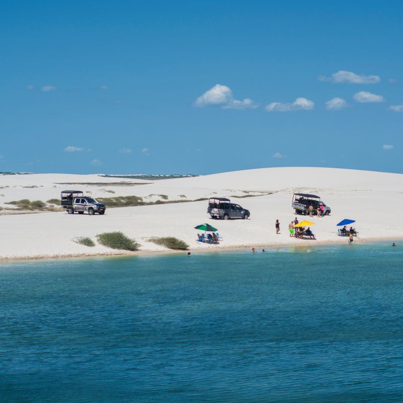 Explore a beleza intocada do Circuito Ponta Verde em um roteiro exclusivo de dia inteiro pelo Parque Nacional. Primeiramente, nossa equipe inicia o serviço às 9h, buscando você diretamente em sua pousada. Em seguida, iniciamos a trilha em veículos 4×4, atravessando as imponentes dunas dos Lençóis Maranhenses. Certamente, você avistará pelo caminho aves exuberantes, como garças e guarás, além de outros animais nativos que habitam a região.