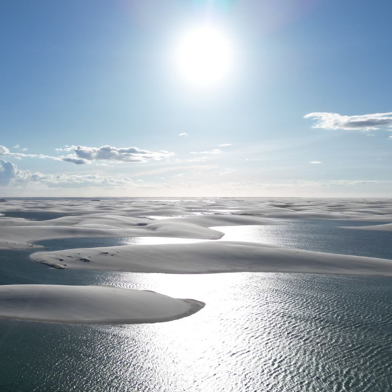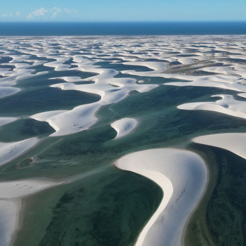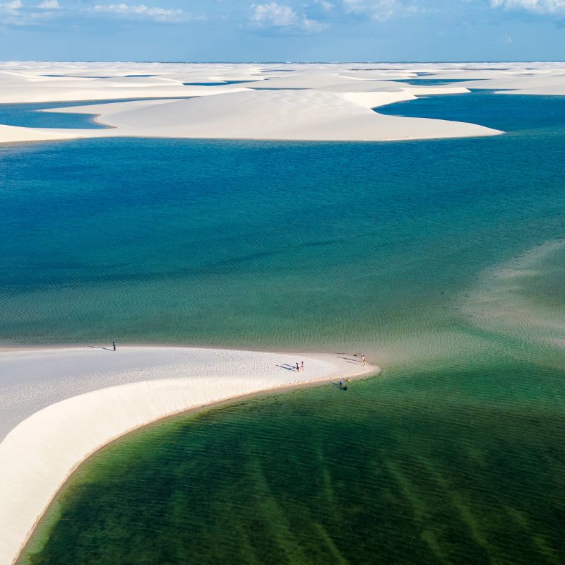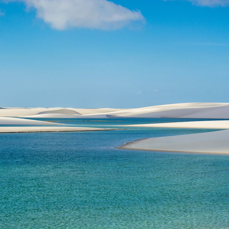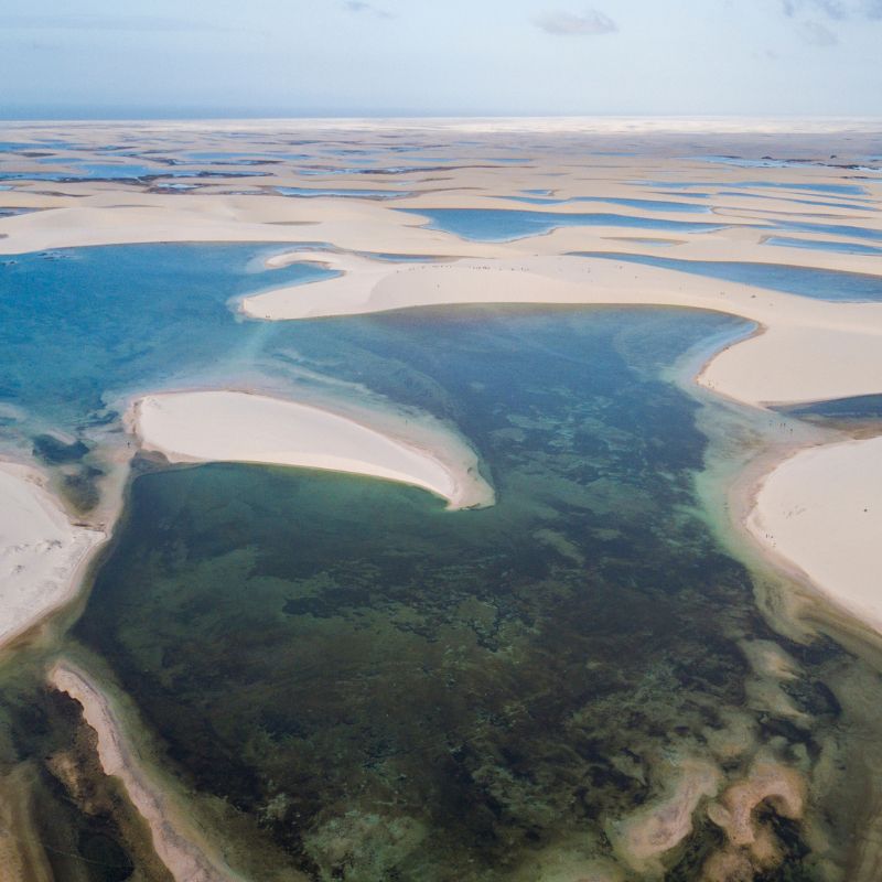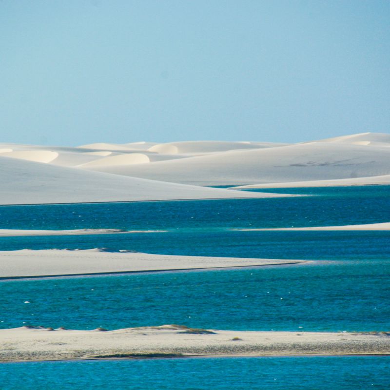 A caminhada até a Lagoa das Emendadas é igualmente cativante. Com duração de 30 a 40 minutos, o caminho é guiado por um profissional que conhece cada canto desse paraíso. A cada topo de duna conquistado, você será recompensado com vistas de tirar o fôlego, onde infinitas porções de água se descortinam diante dos seus olhos.