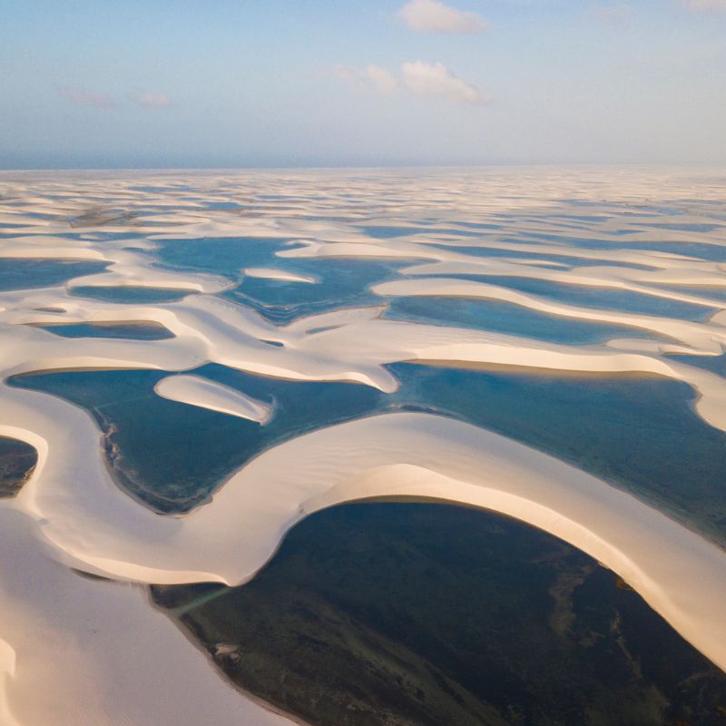 O percurso até a lagoa é um espetáculo à parte. Imagine-se rodeado por imensas dunas, cujas formações de areia são verdadeiras obras-primas da natureza. Durante o trajeto, que é feito em veículos 4×4 e dura cerca de 45 minutos, você será presenteado com paisagens deslumbrantes e lagoas de águas cristalinas que se estendem até onde a vista alcança.